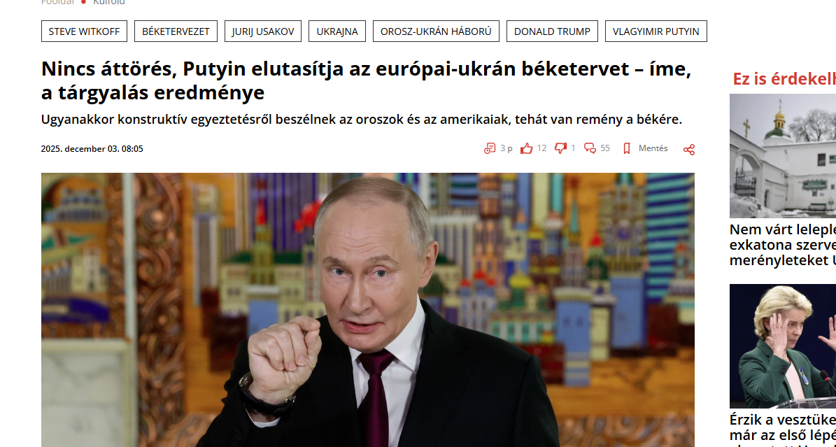 A kormány lakájmédiája működésben. Avagy a Mandiner tudósít: ha Putyin elutasítja, akkor európai-ukrán béketerv, ha nem utasítja el, akkor amerikai béketerv.
